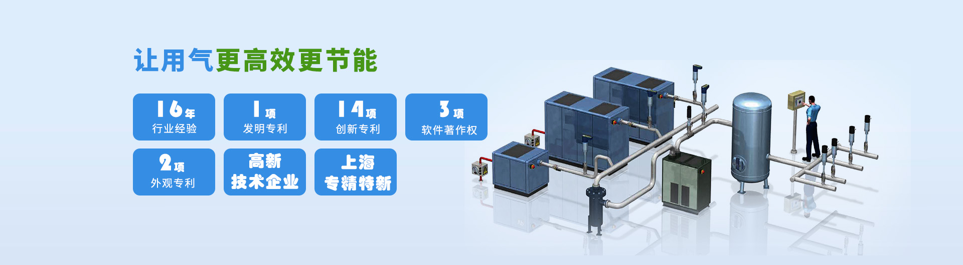 >自主研发了极具市场优势的空气压缩机全方位节能系统解决方案;